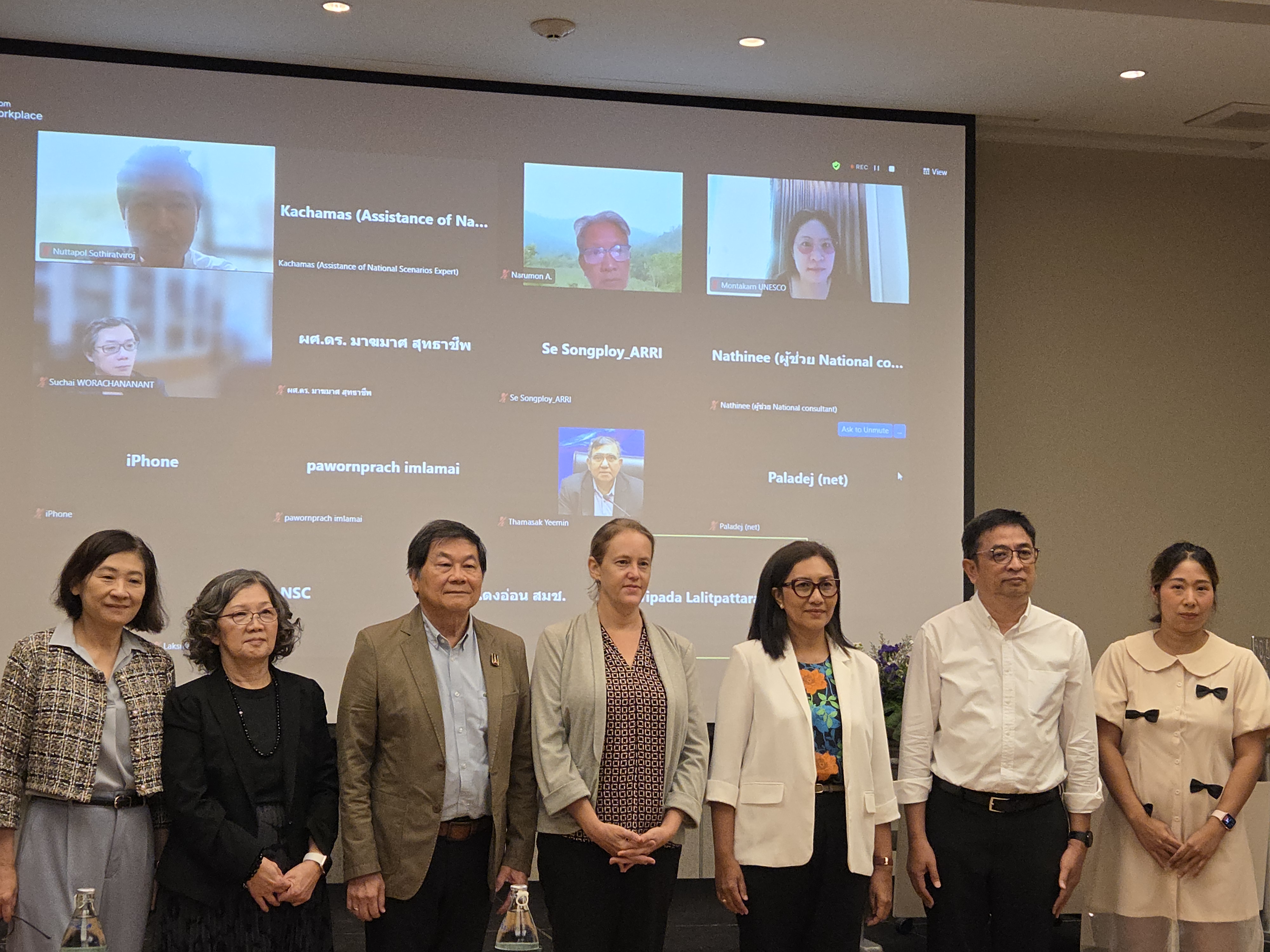 วันที่ 15 สิงหาคม 2568 นำโดยศาสตราจารย์ ดร.เผดิมศักดิ์ จารยะพันธุ์ ผู้อำนวยการโครงการฯ ดร.วิเทศน์ ศรีเนตร ผู้เชี่ยวชาญด้านฉากทัศน์ของโครงการ และทีมผู้เขียนหลัก ได้แก่. รองศาสตราจารย์ ดร.นฤมล อรุโณทัย และศาสตราจารย์ ดร.สุวลักษณ์ สาธุมนัสพันธุ์ ได้จัดการประชุมการพัฒนาฉากทัศน์และแนวทางสู่อนาคตที่ยั่งยืนของระบบนิเวศทางทะเลและชายฝั่ง ครั้งที่ 2 ขึ้น ณ โรงแรมปทุมวันปริ๊นเซส กรุงเทพฯ ซึ่งเป็นการประชุมต่อยอดผลที่ได้รับจากการประชุมการพัฒนาฉากทัศน์ฯ ครั้งที่ 1 โดยมีการวิเคราะห์ผลที่ได้รับจากการประชุมในครั้งแรกว่าในภาพรวม ผู้เข้าร่วมประชุมมีความเห็นต่อฉากทัศน์แต่ละแบบอย่างไร จากนั้นจึงนำใจความสำคัญของแต่ละแบบมาขยายผลเพื่อให้ฉากทัศน์มีความสมบูรณ์มากยิ่งขึ้น